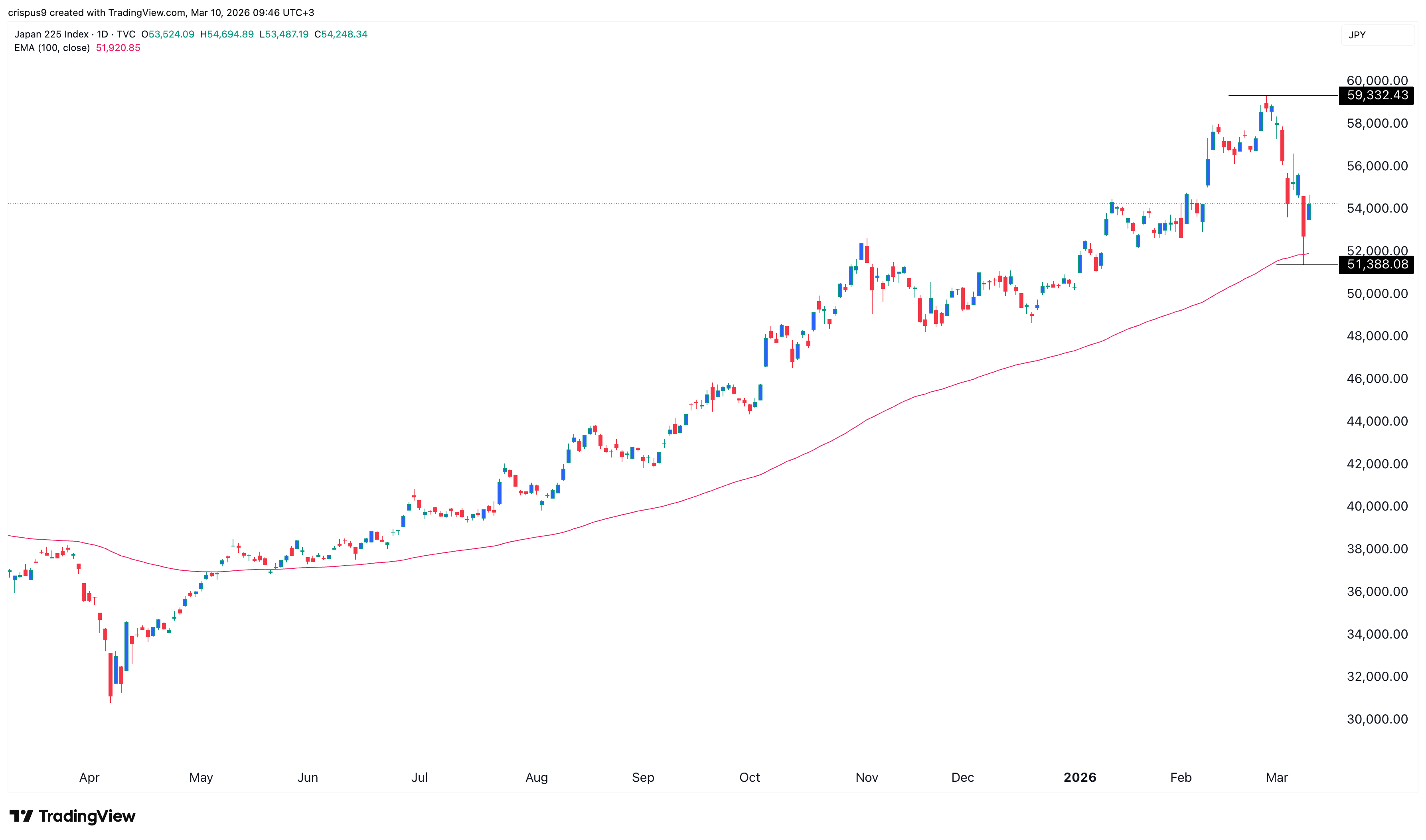 The Nikkei 225 Index rebounded on Tuesday as global stocks bounced back after the latest statements by Donald Trump. It jumped to ¥54,145, up 5% from its lowest point on Monday.