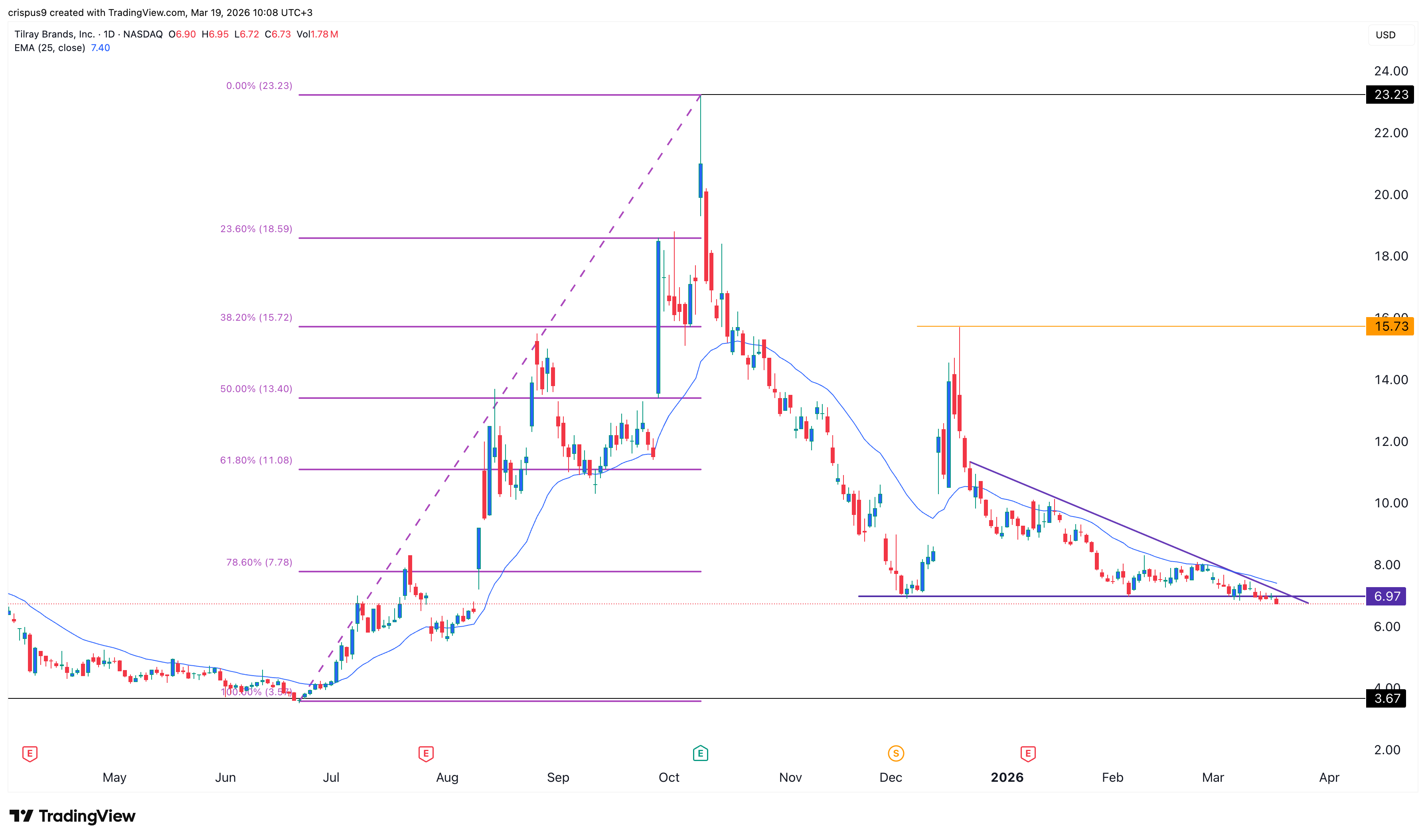 The post Tilray stock price has just lost a key support: is a crash to $5 coming? appeared first on Invezz