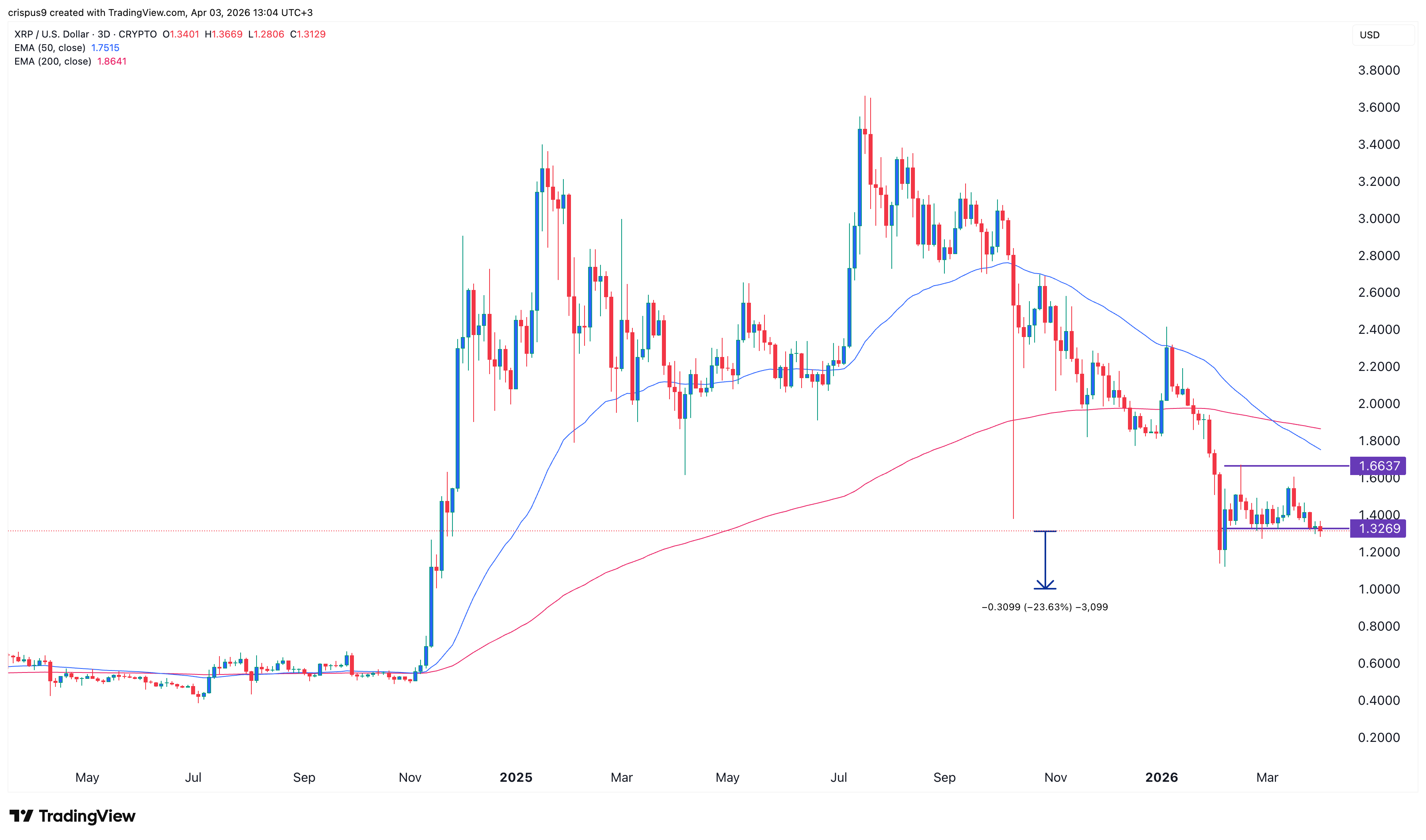 XRP price has pulled back in the past few months and constantly remains in a technical bear market as demand from investors continues falling. Ripple token was trading at $1.3115 on Friday, down by over 60% from its all-time high of $3.6. This consolidation continued despite the major progress that Ripple Labs is making.
