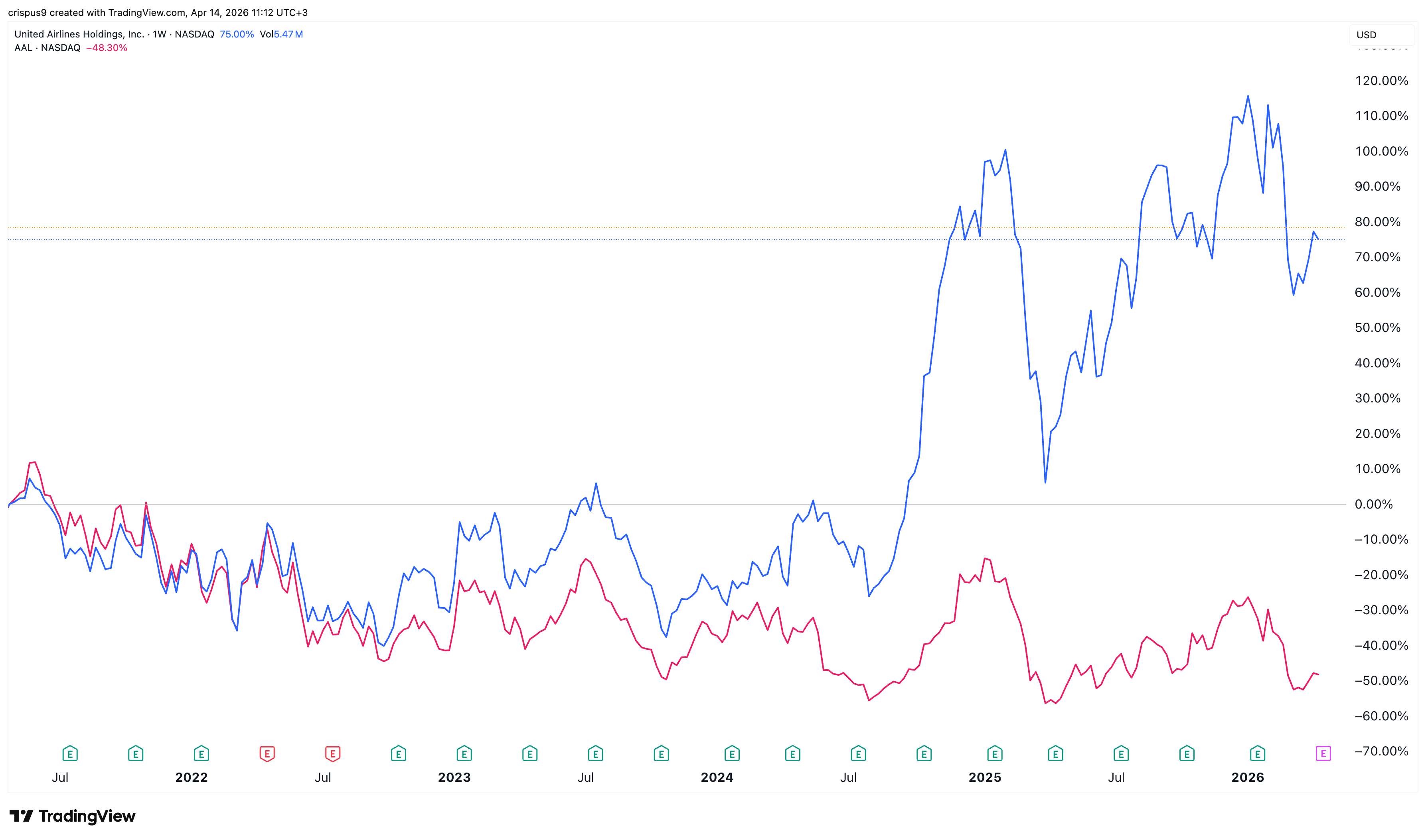 The United Airlines (UAL) and American Airlines (AAL) stocks will be in the spotlight today, April 14, as investors react to news of a potential mega-merger. AAL has dropped to $11.25, down by over 30% from its highest point last year.